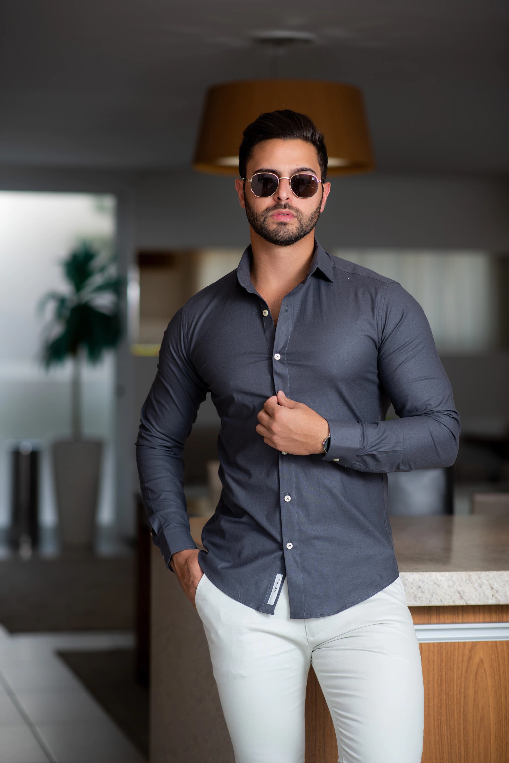 Com gola em lapela estruturada, essa camisa é versátil para compor looks formais ou casuais, perfeita para o dia a dia do homem contemporâneo que não abre mão do conforto e da elegância.