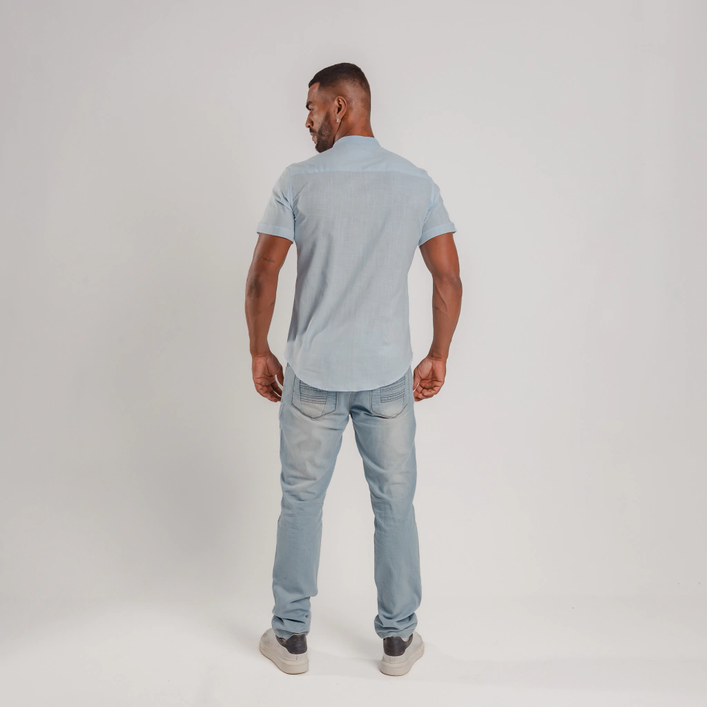 Linda camisa de branca slim com um acabamento totalmente atual, gola padre, totalmente desenvolvida para o homem elegante ousado no dia a dia! A peça possui caimento acinturado, mangas curtas, fechamento frontal com botões.