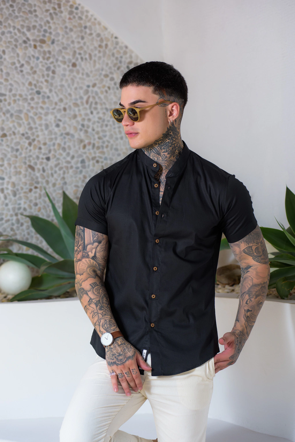 Dicas de Estilo: Combine com calças de sarja para um visual casual e elegante ou com um terno para eventos formais. A camisa gola padre é uma peça versátil que adiciona um toque de classe a qualquer look.