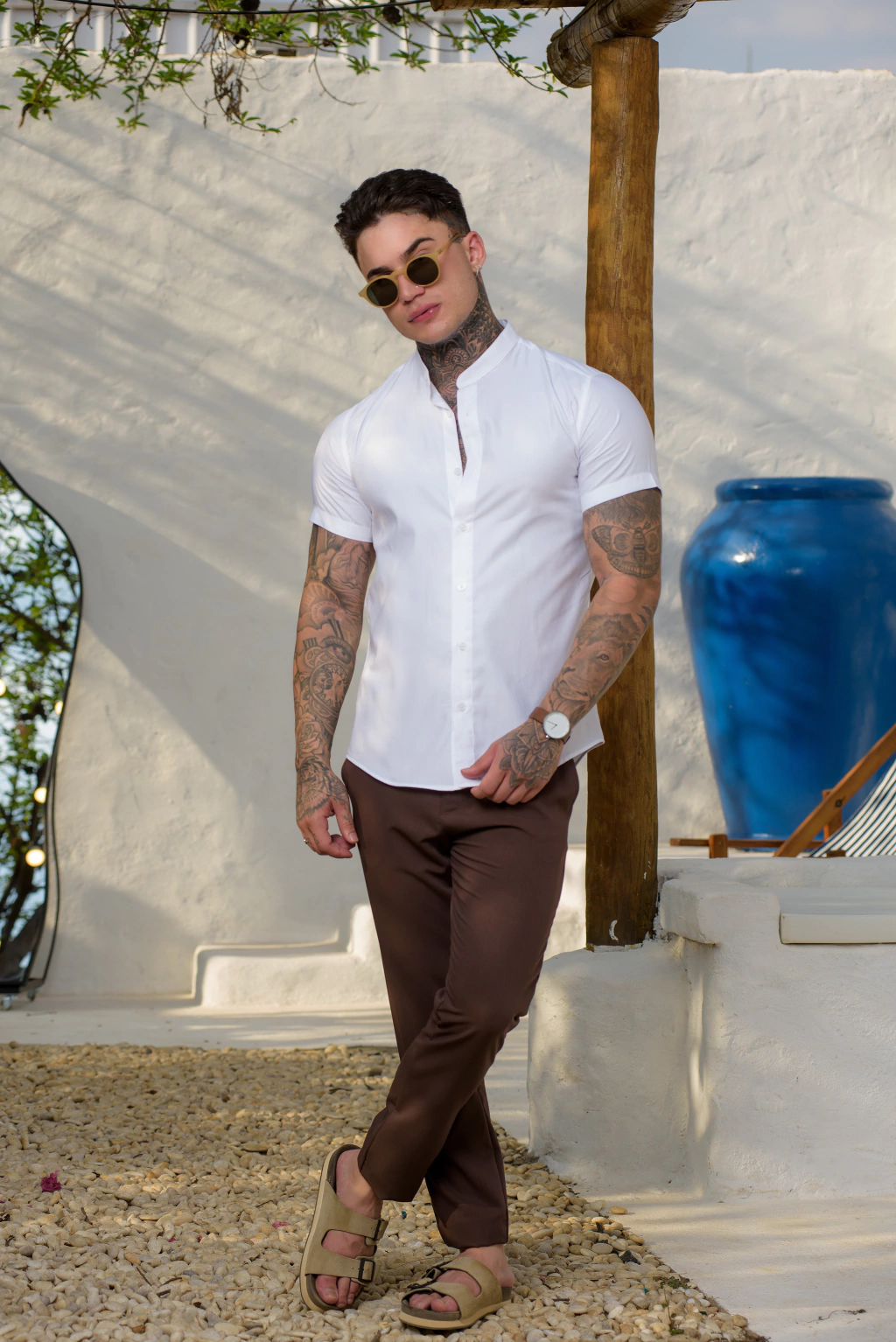 Linda camisa manga curta slim confort, acabamento impecável, 100% algodão, Tricoline Fio 80, gola padre, produzida artesanalmente, totalmente desenvolvida para o homem elegante ousado no dia a dia! A peça possui caimento acinturado, mangas curtas, fechamento frontal com botões.