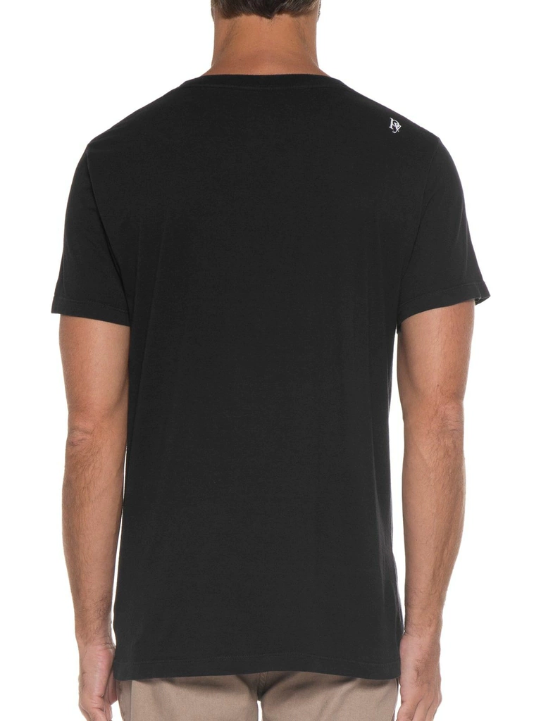 A camiseta azul é confeccionada em malha de algodão. A peça possui gola careca com acabamento canelado, estampa escrita aplicada na altura do tórax em cor contrastante, logo da marca aplicado em cor contrastante na parte posterior, tag da marca aplicado na barra na parte lateral, mangas curtas, shape solto, caimento reto e acabamento pespontado.